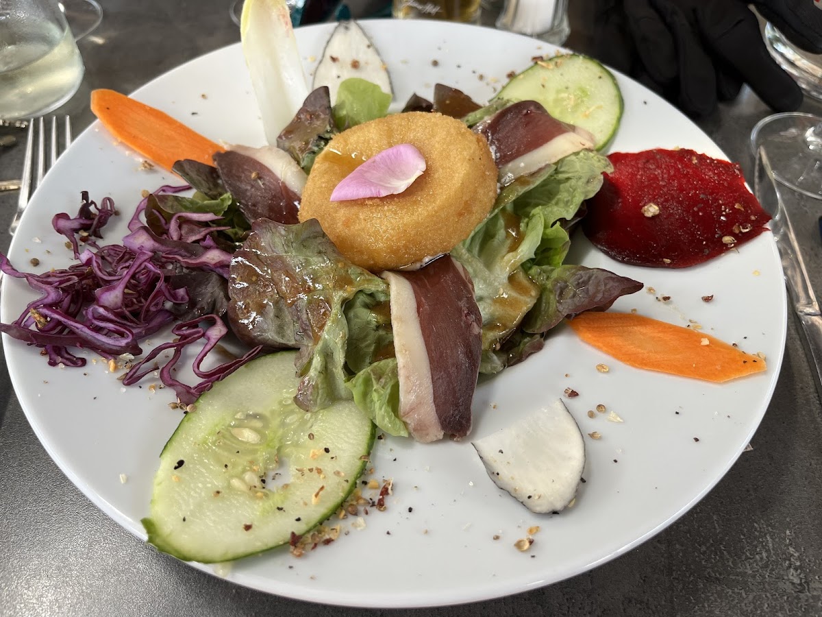 During our 4 days cycling through the Luberon this was definitely our best lunch Located in the heart of the village, featuring a great covered outdoor terrace it also offered ample space for our bicycles (in our view) Welcome was friendly and even without a reservation we were immediately seated at one of the remaining tables Apart from two set menus there were also a la carte options We selected one of the set menus, 4 courses which included a goat cheese/ duck salad, slow cooked pork, a cheese selection and dessert and separately a Tuna Tataki with Wakame & Sesame Wasabi All food was delicious and served at the right temperature....and served with a smile ! Definitely a venue we will return to and one we can highly recommend to those after a great regional culinary experience at super value for money